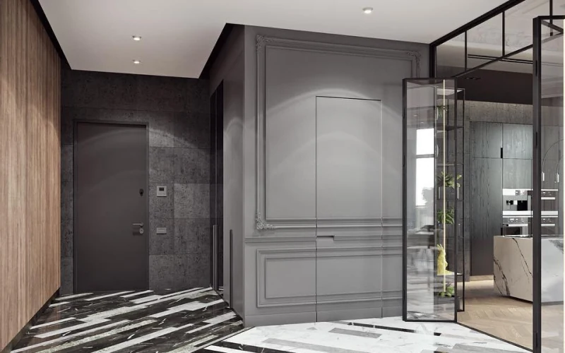 Дверь с молдингом — это не просто дверь, а элемент архитектуры. Лаконичные вертикальные линии или рамки по периметру дверного полотна придают интерьеру аккуратность, а контрастный цвет (например, золотой молдинг на белой двери) превращает её в акцентный элемент.
