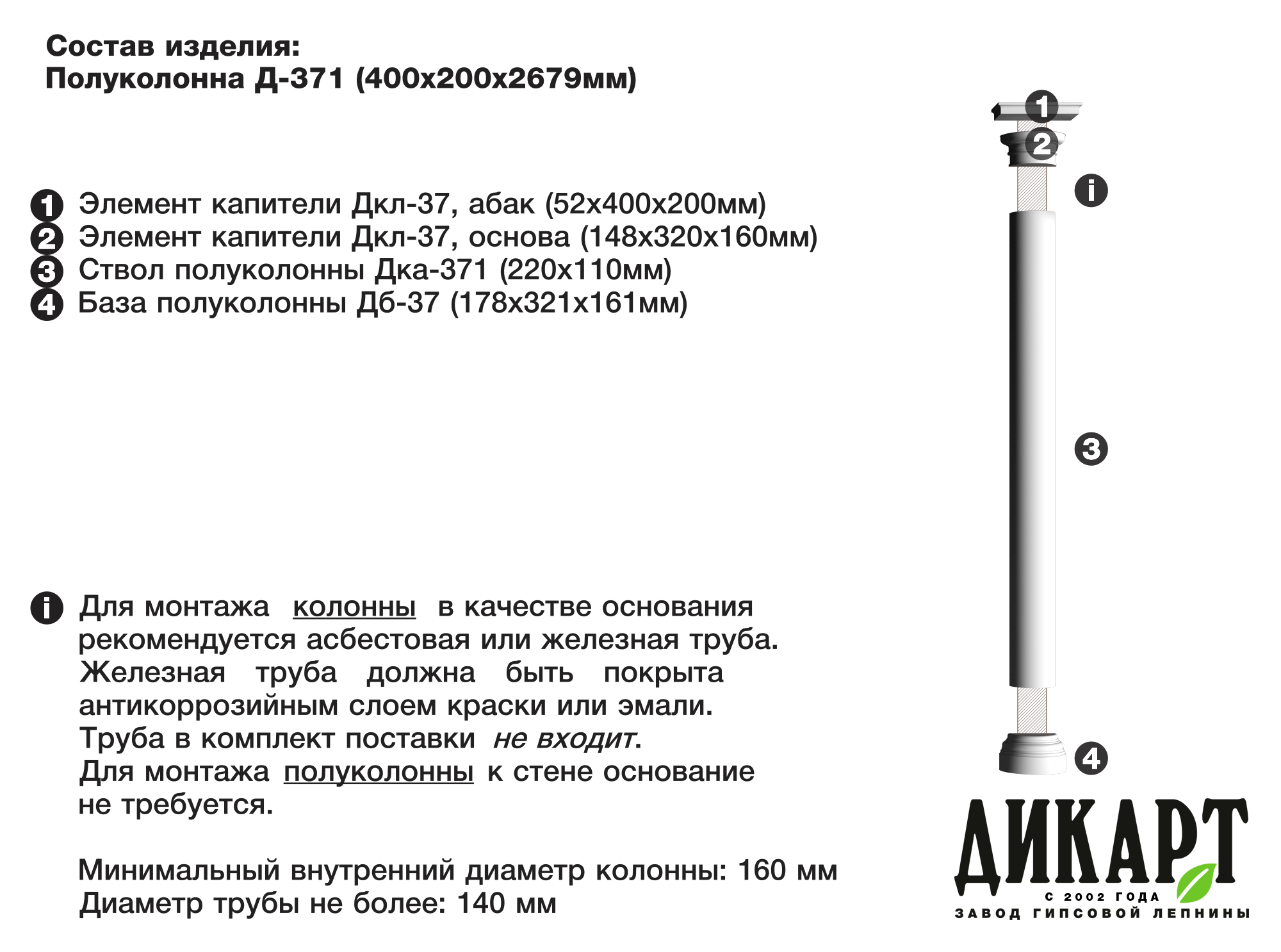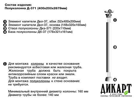 Декоративная колонна из стеклофибробетона Дикарт Д-371 СФБ сможет украсить любое помещение и фасад, придать им изящности, торжественности и аристократизма. Известные со времен античности колонны, сегодня широко используются для оформления интерьеров и экстерьеров в стиле классицизма. Они вызывают восхищение и служат воплощением изысканного вкуса хозяина дома. Обратите внимание изделие продается комплектом. Купить колонну из стеклофибробетона Дикарт Д-371 СФБ, можно заполнив форму заявки. Если Вам нужна помощь в подборе стеклофибробетонного декора для стен – обращайтесь, наши менеджеры Вас проконсультируют!