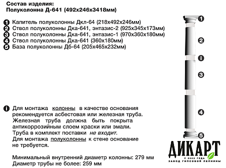 Декоративная колонна из стеклофибробетона Дикарт Д-641 СФБ сможет украсить любое помещение и фасад, придать им изящности, торжественности и аристократизма. Известные со времен античности колонны, сегодня широко используются для оформления интерьеров и экстерьеров в стиле классицизма. Они вызывают восхищение и служат воплощением изысканного вкуса хозяина дома. Обратите внимание изделие продается комплектом. Купить колонну из стеклофибробетона Дикарт Д-641 СФБ, можно заполнив форму заявки. Если Вам нужна помощь в подборе стеклофибробетонного декора для стен – обращайтесь, наши менеджеры Вас проконсультируют!