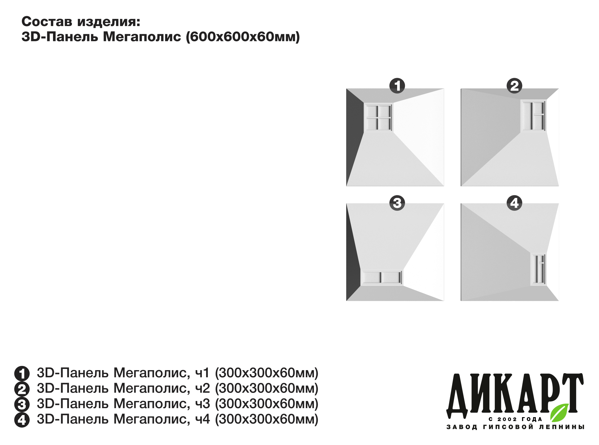 3D-панель Мегаполис, часть 1, 300х300Нх60мм |