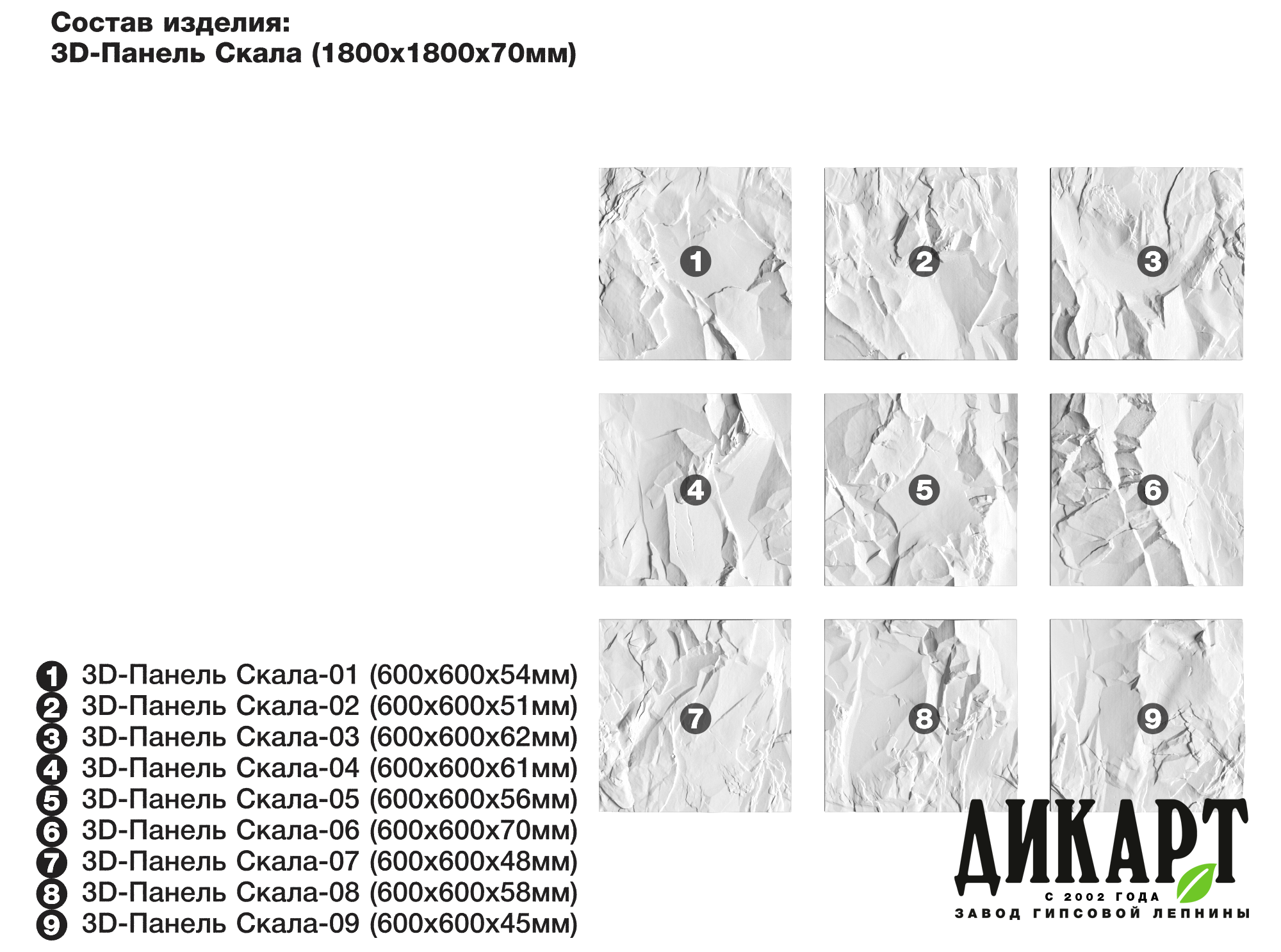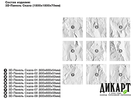 3D-панель Скала-9, 600х600Нх45мм |