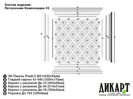3D-панель Ромб-2, 621х532Нх33мм |