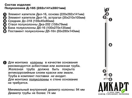 Постамент полуколонны Дб-16П, 55Нх280х140мм |