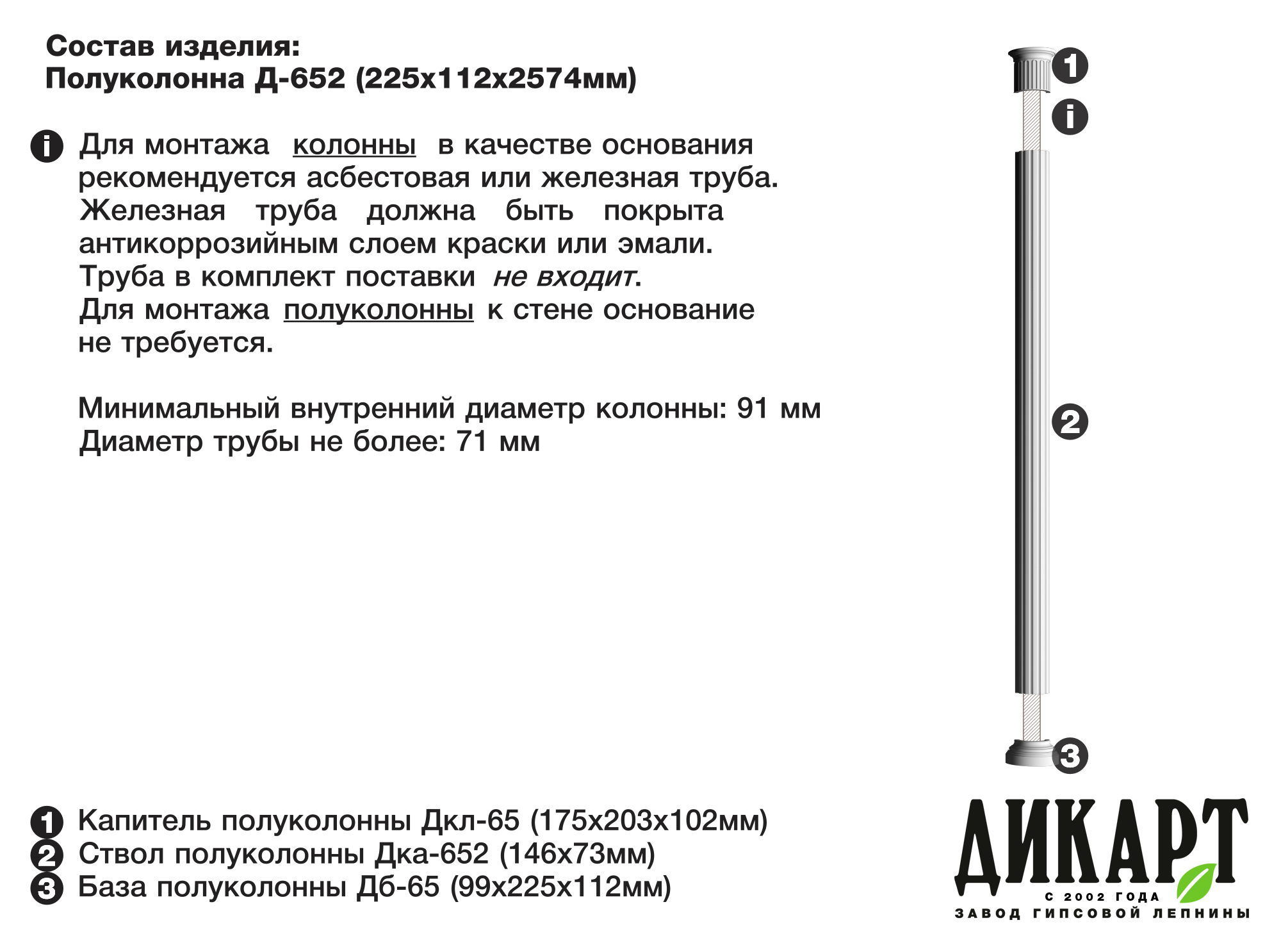 Ствол полуколонны Дка-652, 146х73мм |