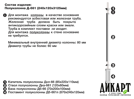 Постамент полуколонны Дб-661П, 670Нх240х120мм |