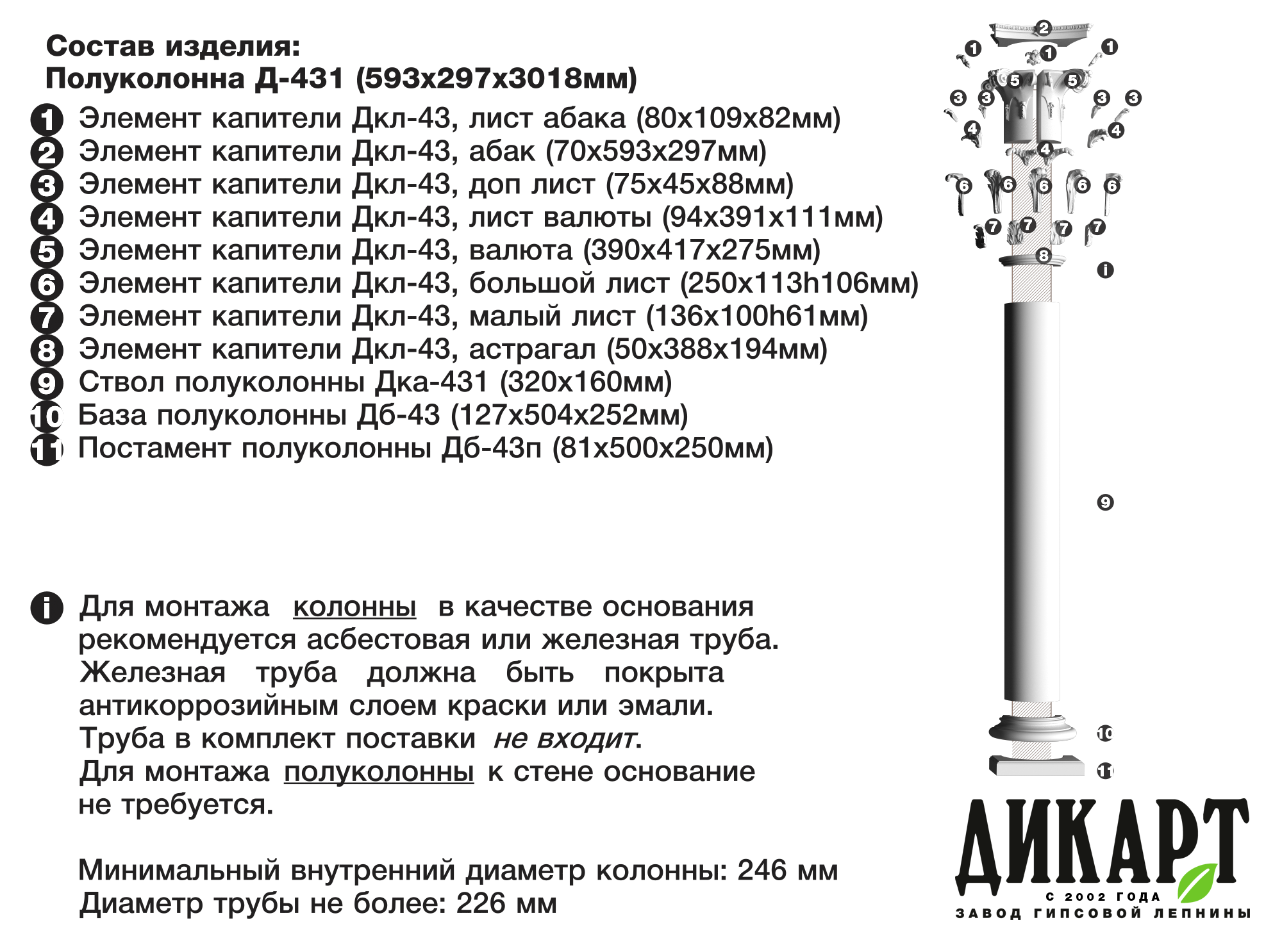 Капитель полуколонны Дкл-43, доп лист, 101Нх45х33мм |
