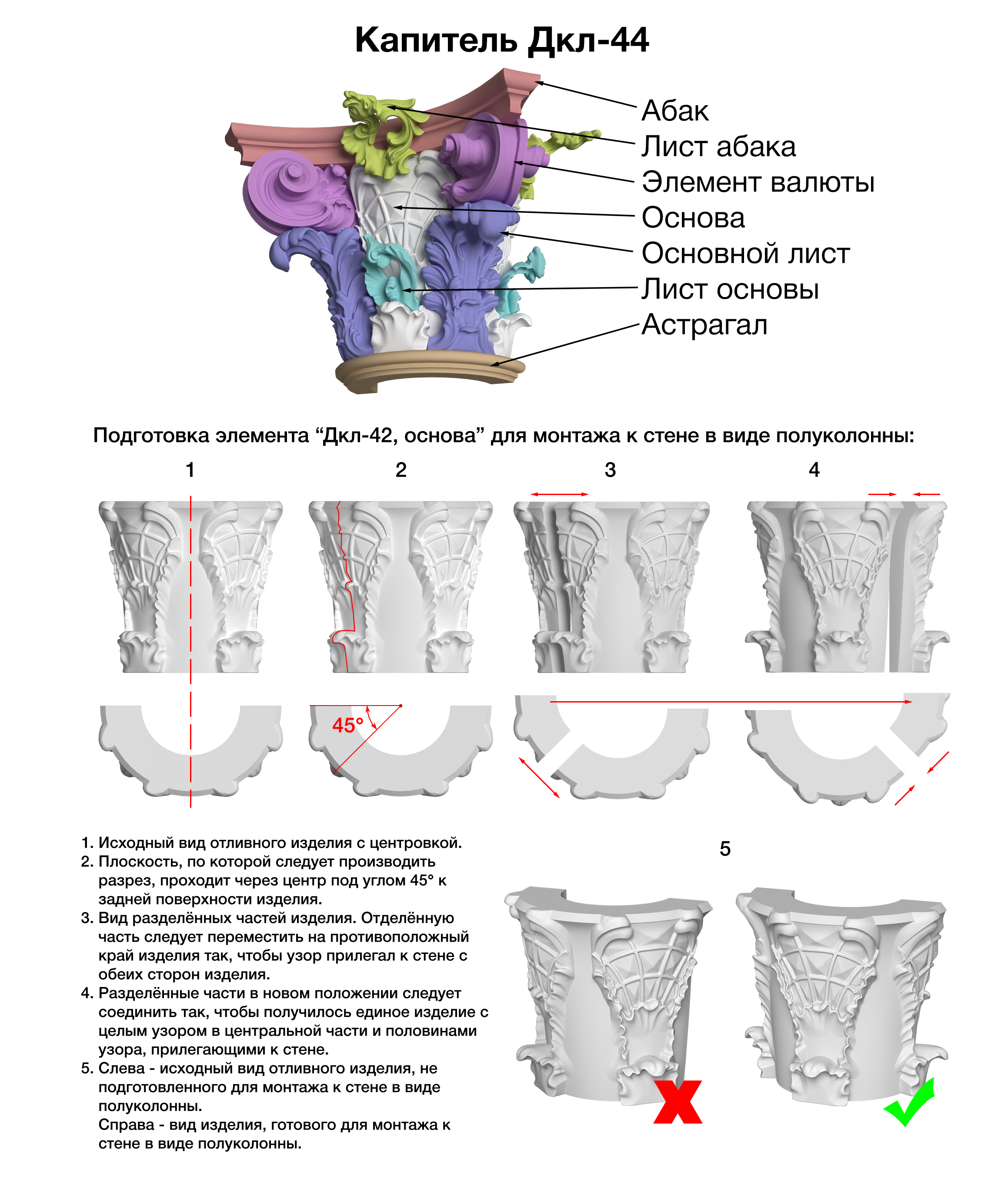 Капитель полуколонны Дкл-42, основной лист, 230Нх146х190мм |