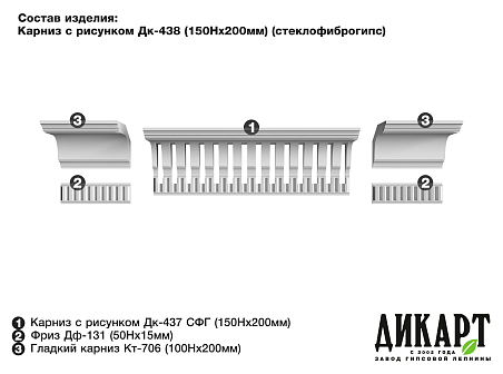 Карниз с рисунком Дк-437, 150Нх200мм (стеклофиброгипс) | 3 012 руб./п.м. |