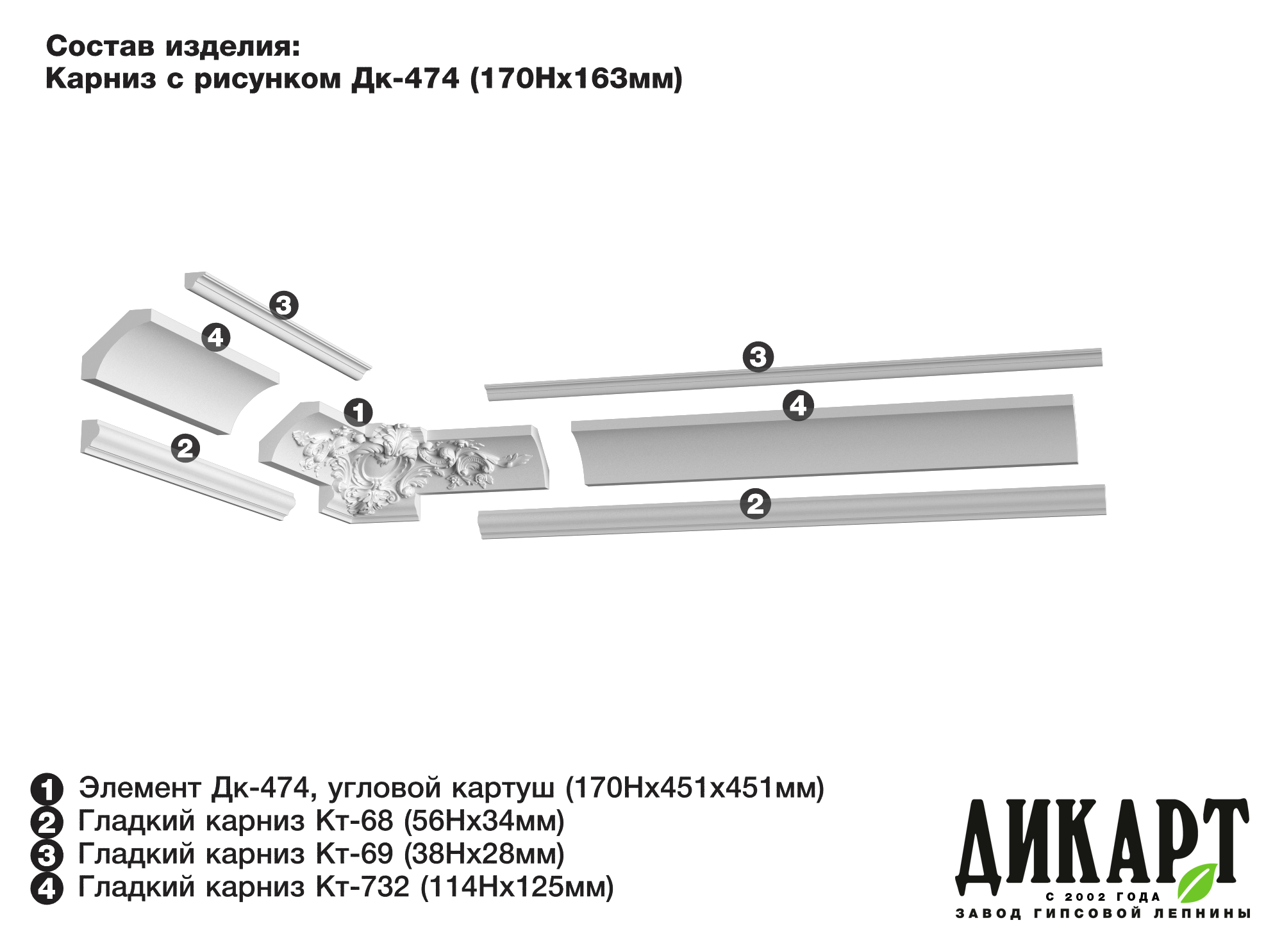 Элемент Дк-474, угловой картуш, 170Нх451х451мм |