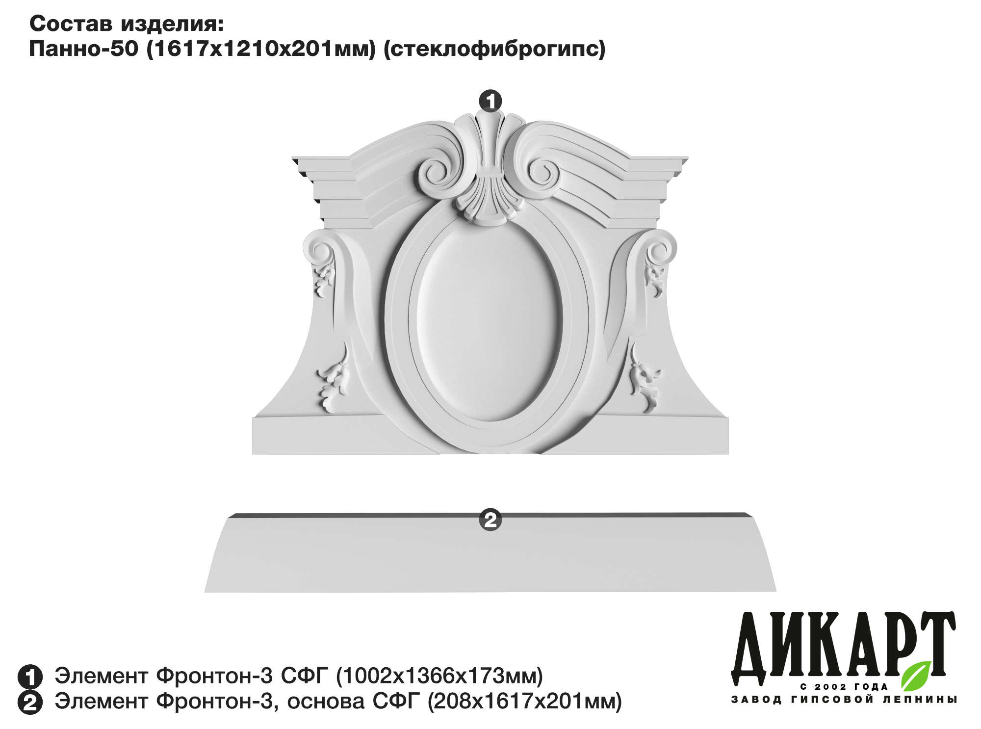 Элемент Фронтон-3, основа, 208Нх1617х201мм (стеклофиброгипс) |