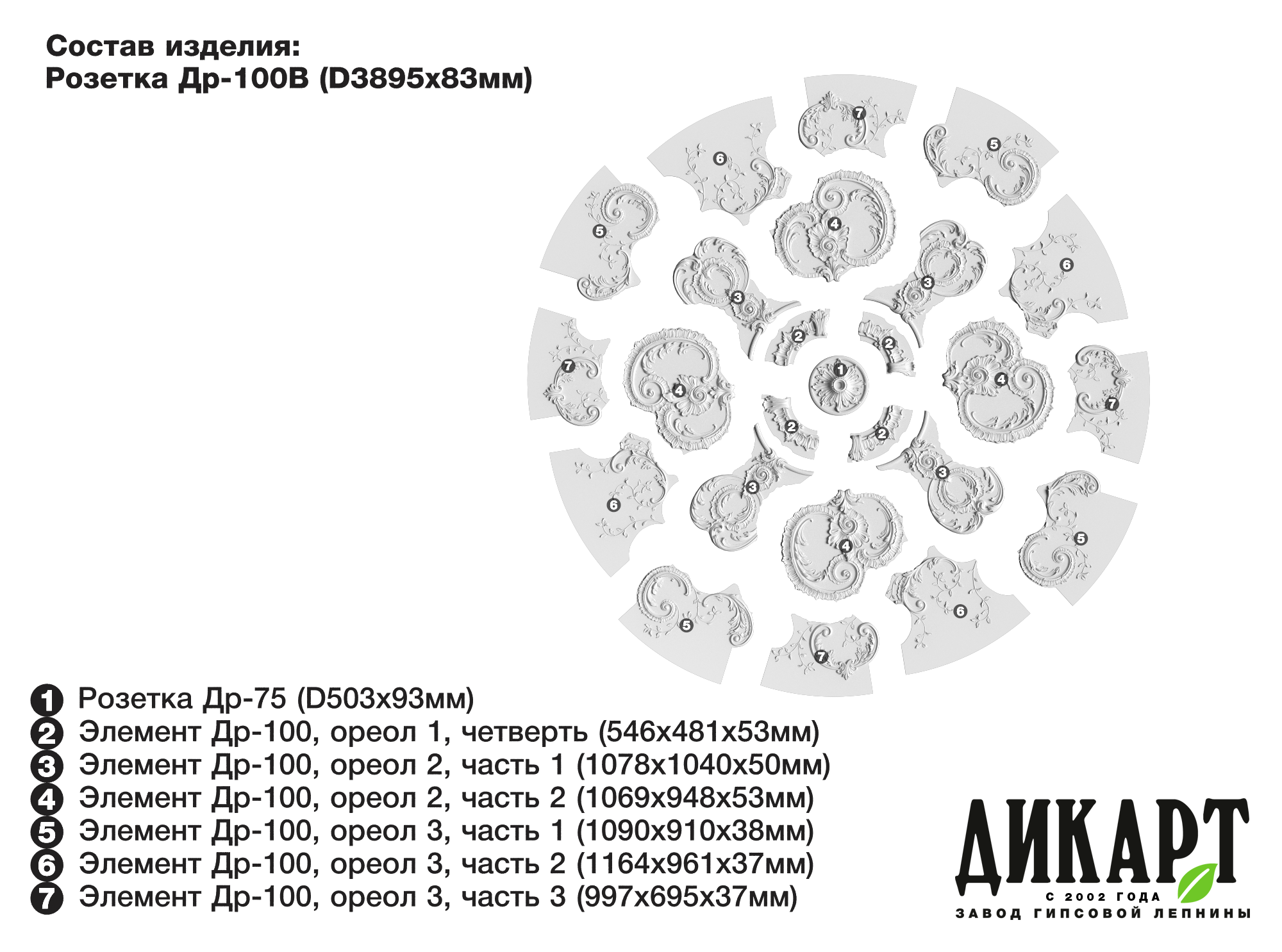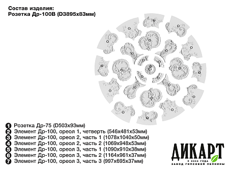 Элемент Др-100, ореол 2, часть 1, 1078х1040Нх50мм | 4 189 руб./шт |