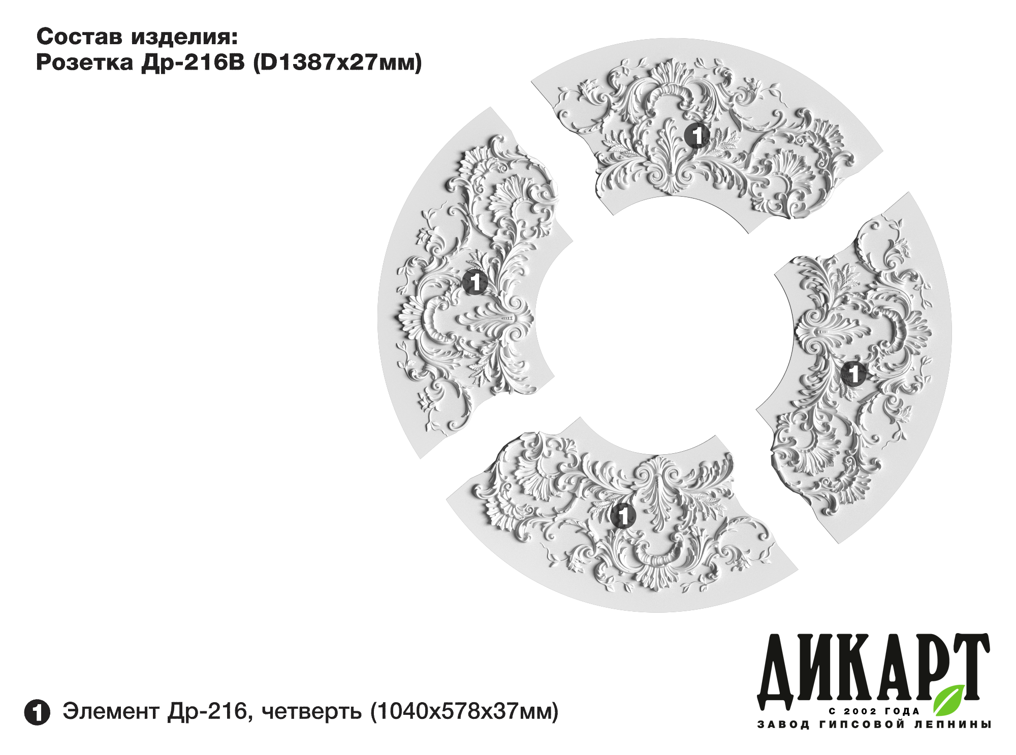Элемент Др-216, четверть, 997х544Нх37мм |