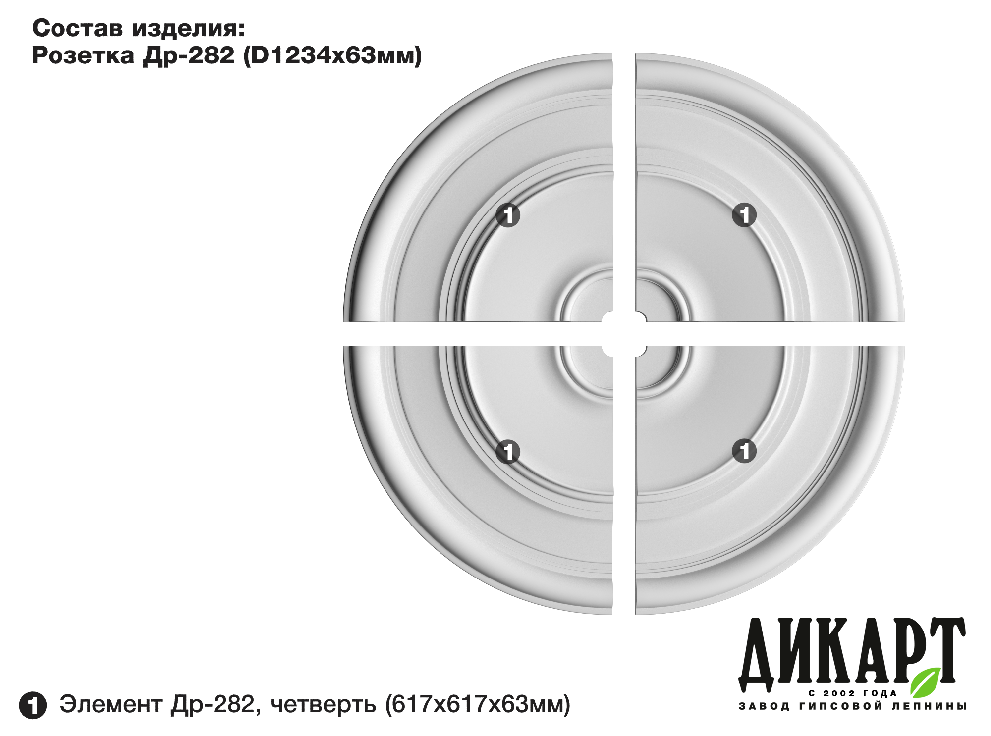 Элемент Др-282, четверть, 617х617Нх63мм |