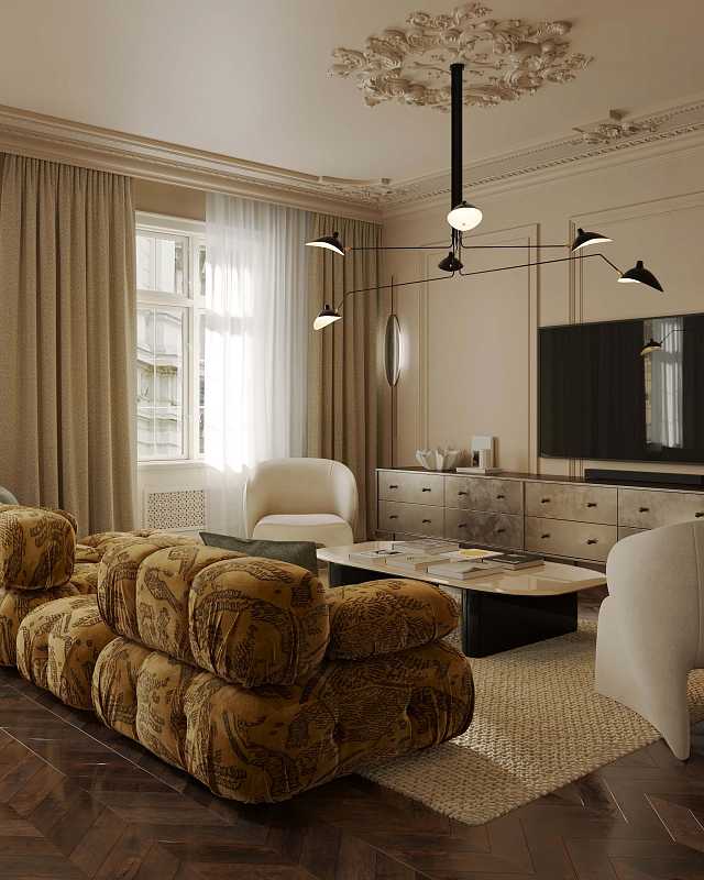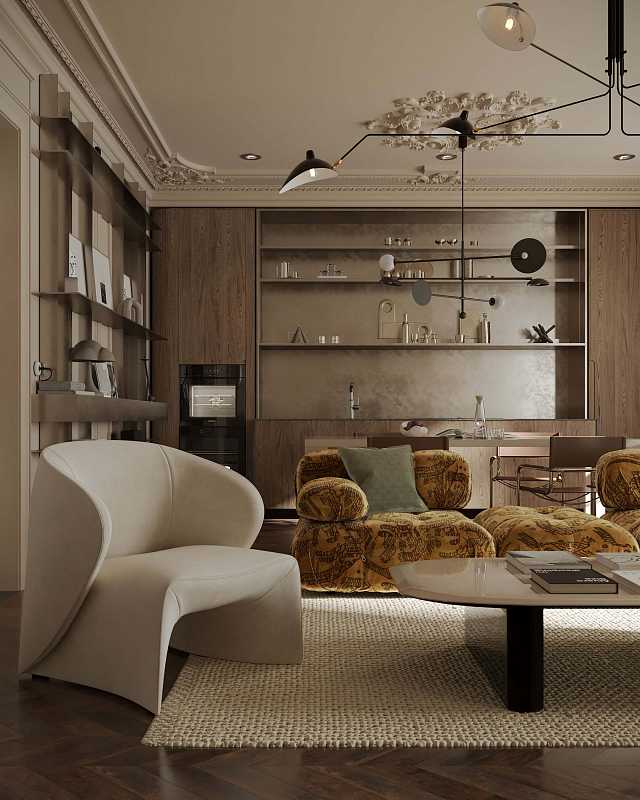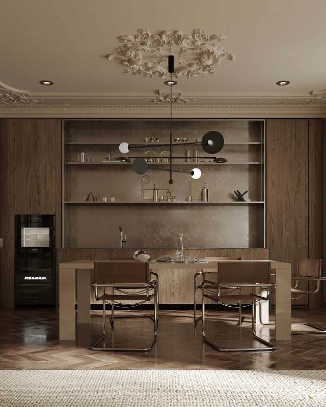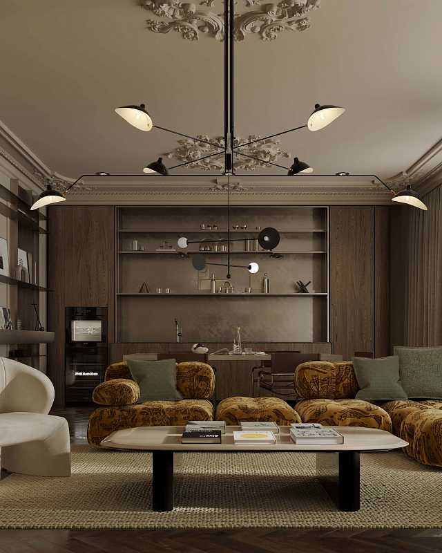 – Потолочная лепнина добавляет интерьеру архитектурной выразительности и соединяет современность с классическим наследием.