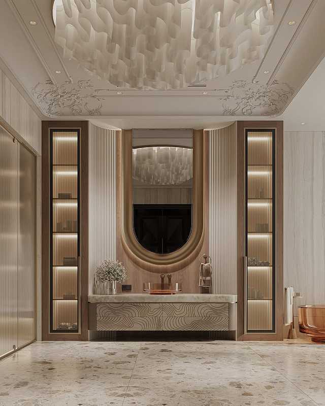 Ванная оформлена в неоклассике — стиле, где сдержанная роскошь встречается с комфортом. Пространство выглядит лёгким, светлым и живым, благодаря тонкому сочетанию классических деталей и современного подхода к комфорту. Здесь нет ни одной случайной линии — всё продумано до мелочей, но при этом не теряется ощущение простоты и тепла.