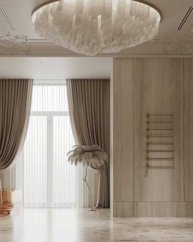 – Изящная лепнина на потолке добавляет интерьеру роскоши.